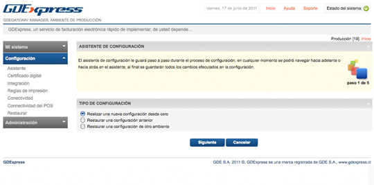 Estado del sistema Asistente de instalación Versionado de configuración