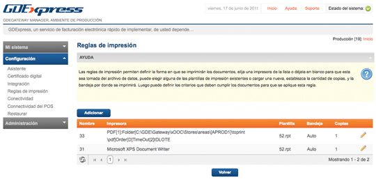 Actualizaciones automáticas Administración de folios Reglas de impresión