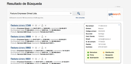 • Buscador Web para gestionar los documentos almacenados, visualizar su estado de autorización, acceder a su archivo electrónico o su representación en PDF.
